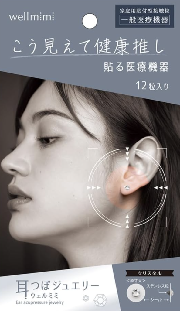 wellmimi(ウェルミミ)の耳つぼジュエリーは、耳に貼ってツボを刺激する一般医療機器タイプの耳つぼシールです。