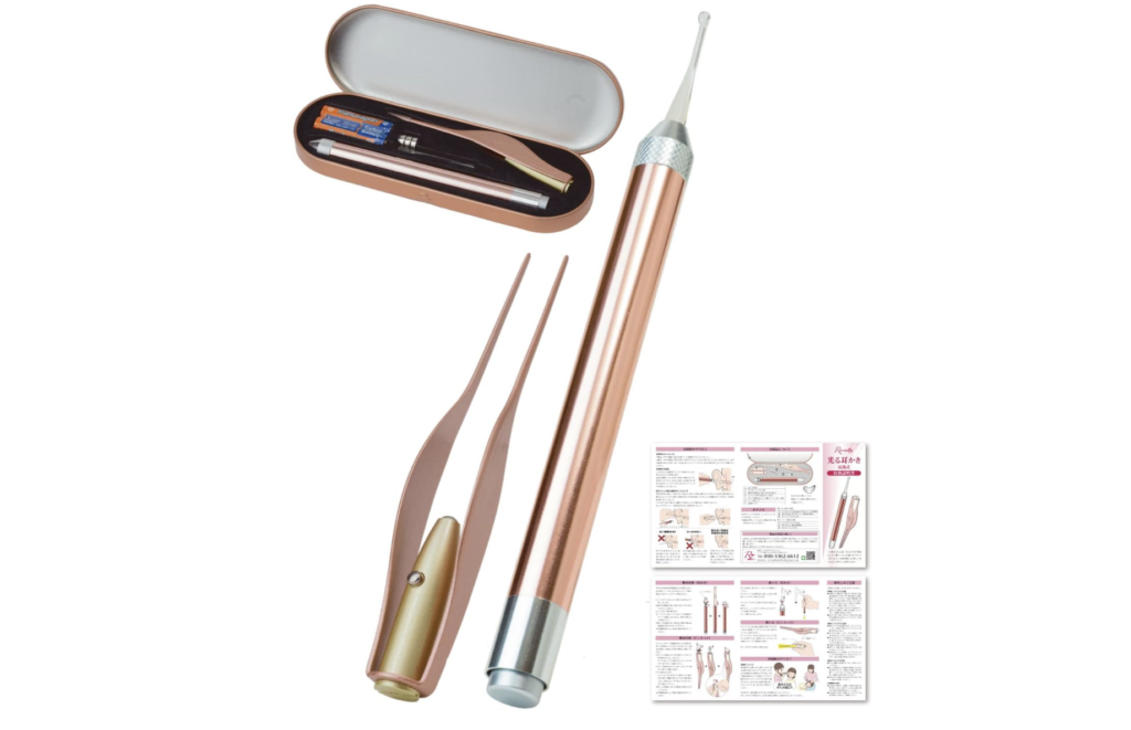 やさしい光で耳の中をしっかり照らしてくれる LEDライト付き耳かき+ピンセット のセット。